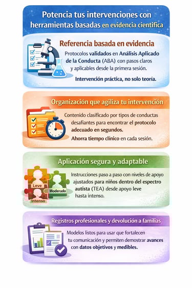 ✔️ Profesionales de ABA que requieren protocolos precisos y organizados para acelerar los avances de sus pacientes.