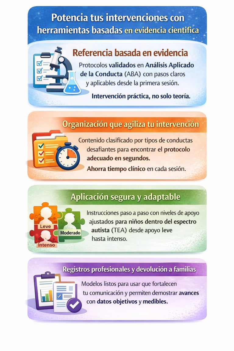 Cada profesional podrá adaptar los protocolos según su rol, favoreciendo la comunicación funcional y la regulación conductual del niño.